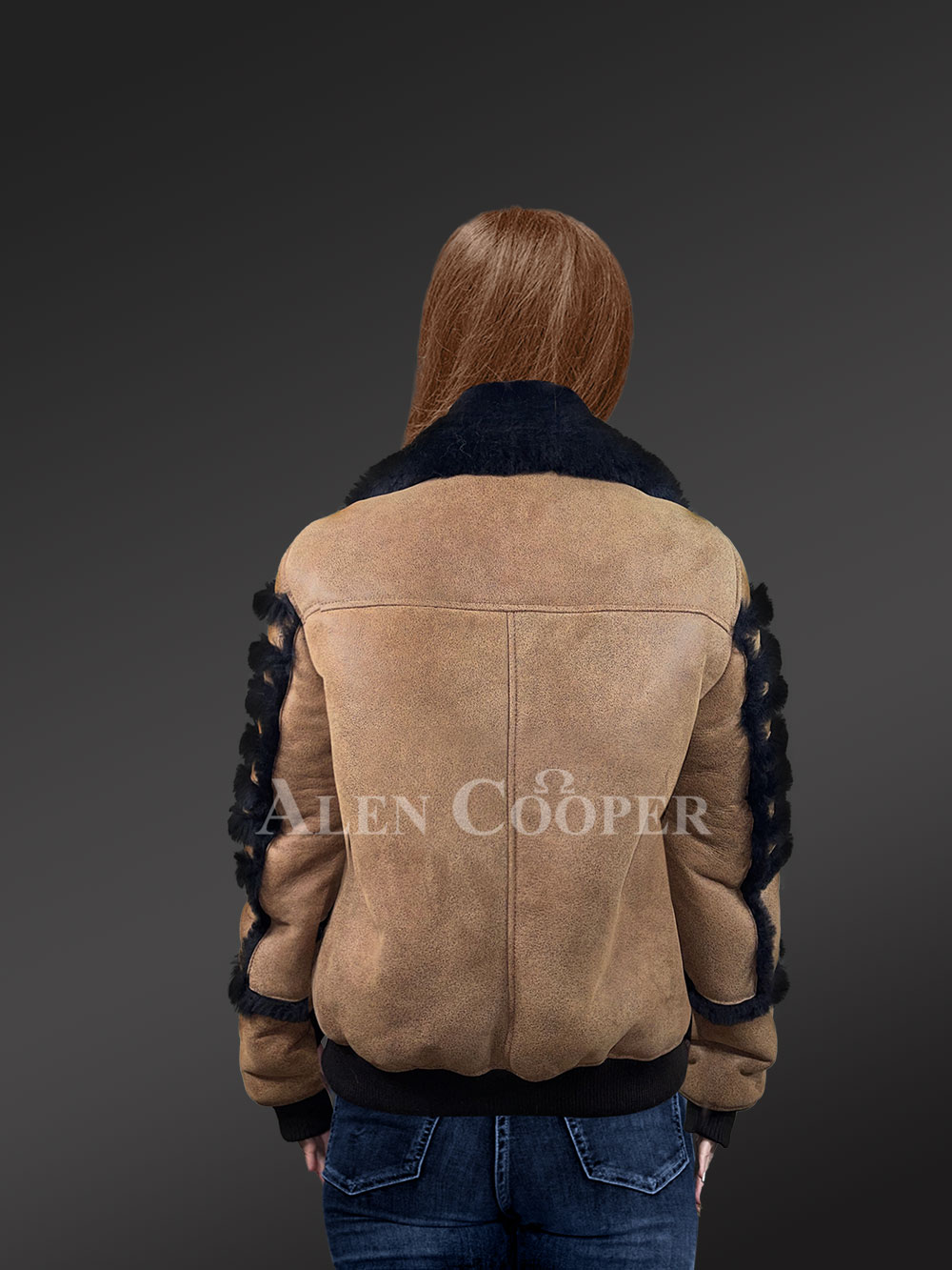 Women’s Authentic Rabbit Fur Bomber Jacket in Tan