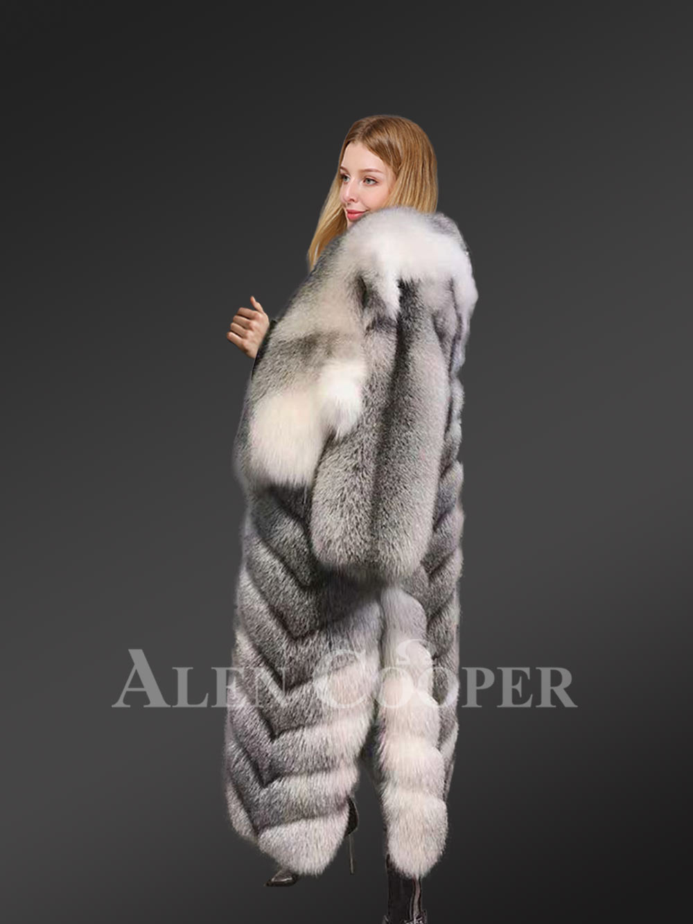 Long Coat with Polar Fox Fur Is a Women Winter Outfit with Elegance