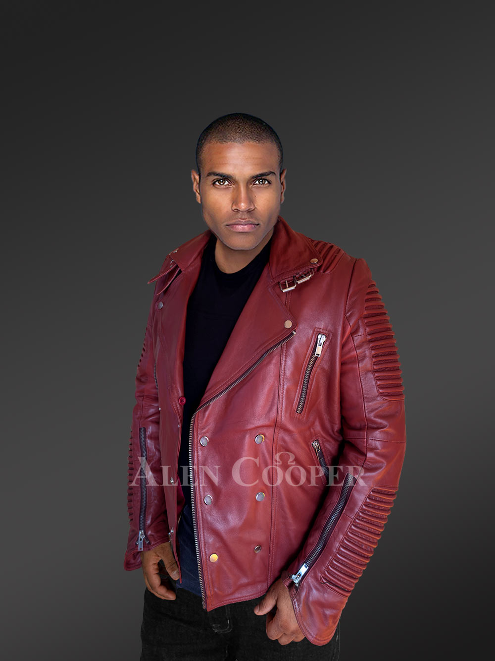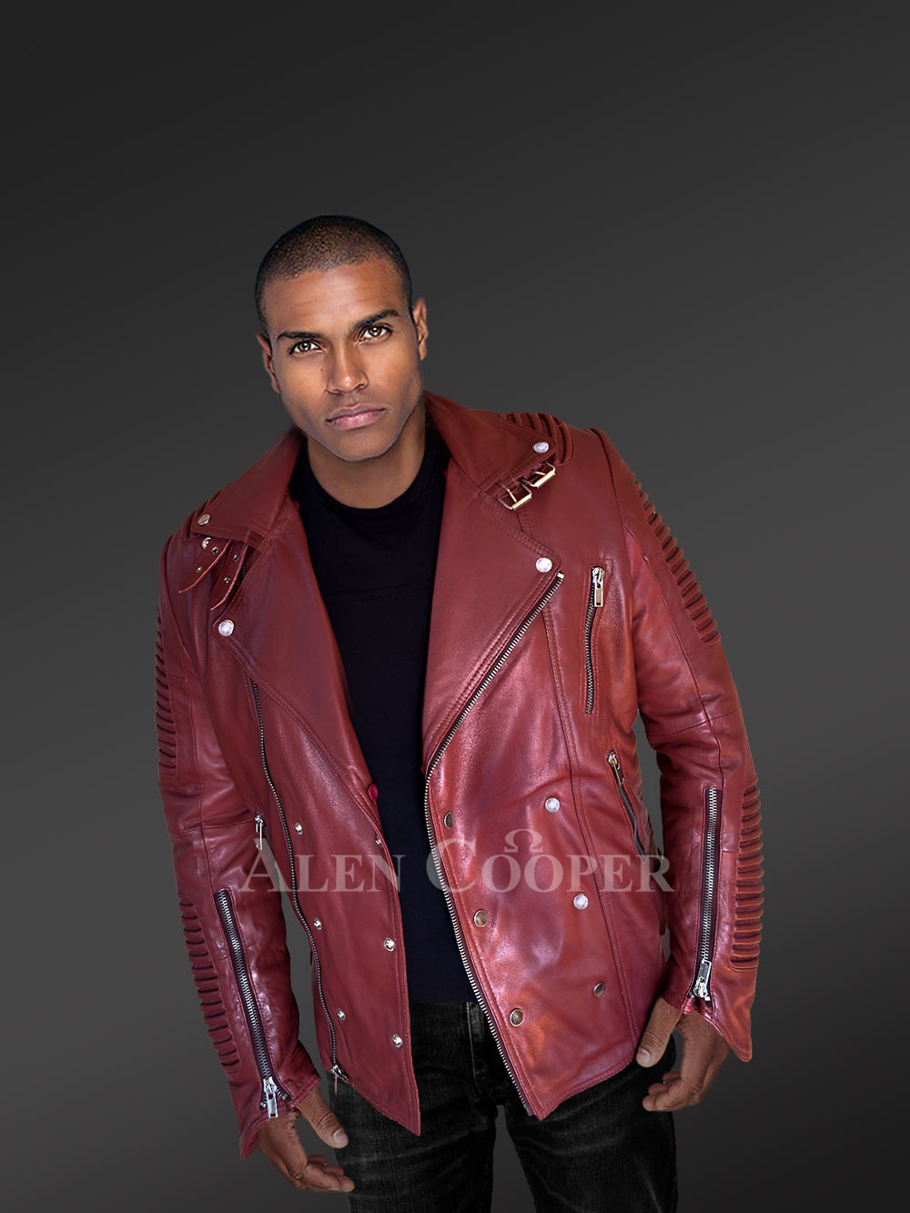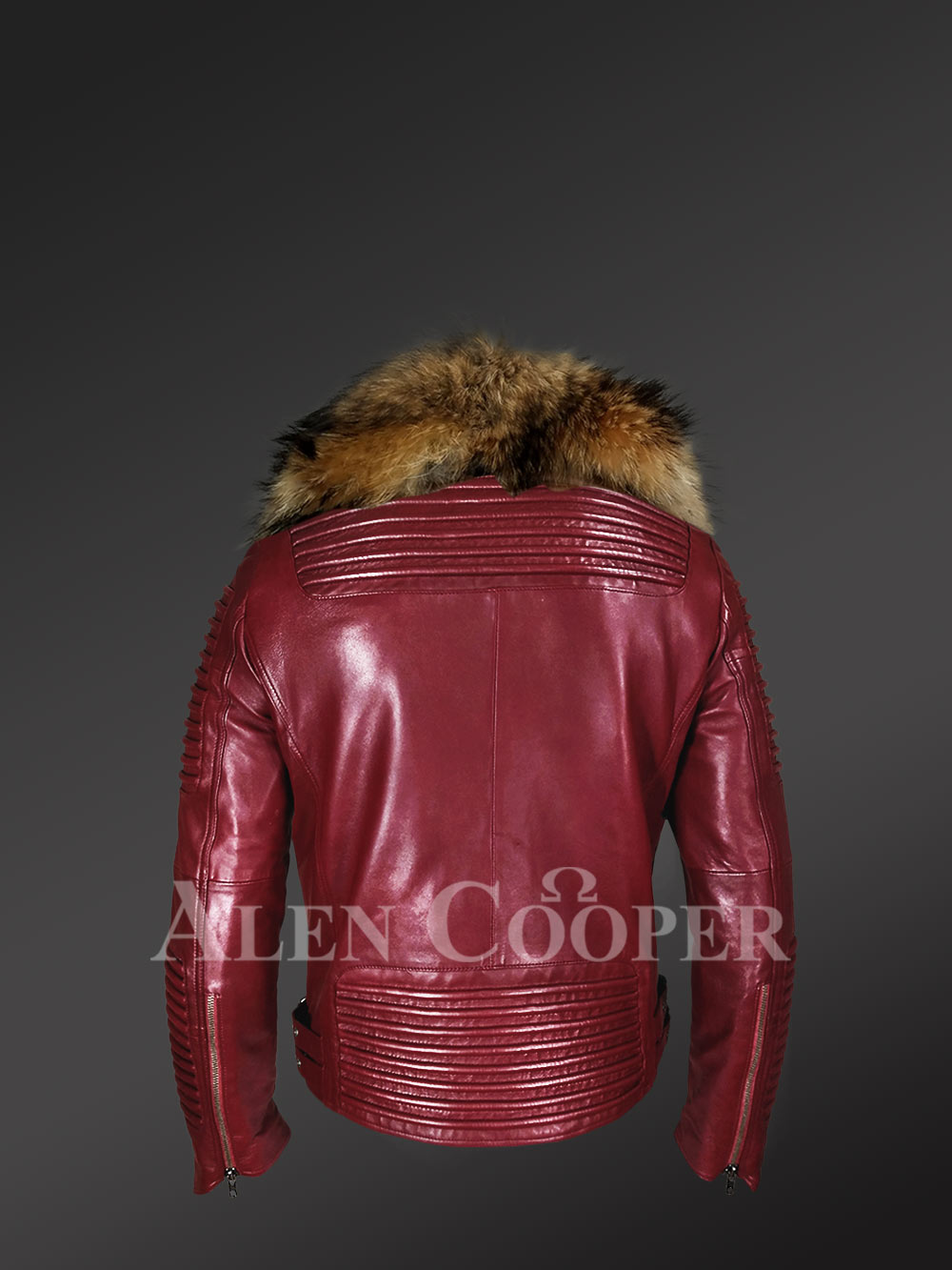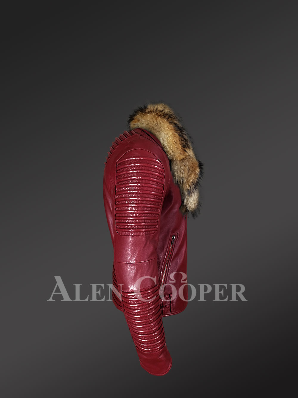 Biker Jacket with Raccoon Lapel in Wine Red – Fascinating Looks Guaranteed