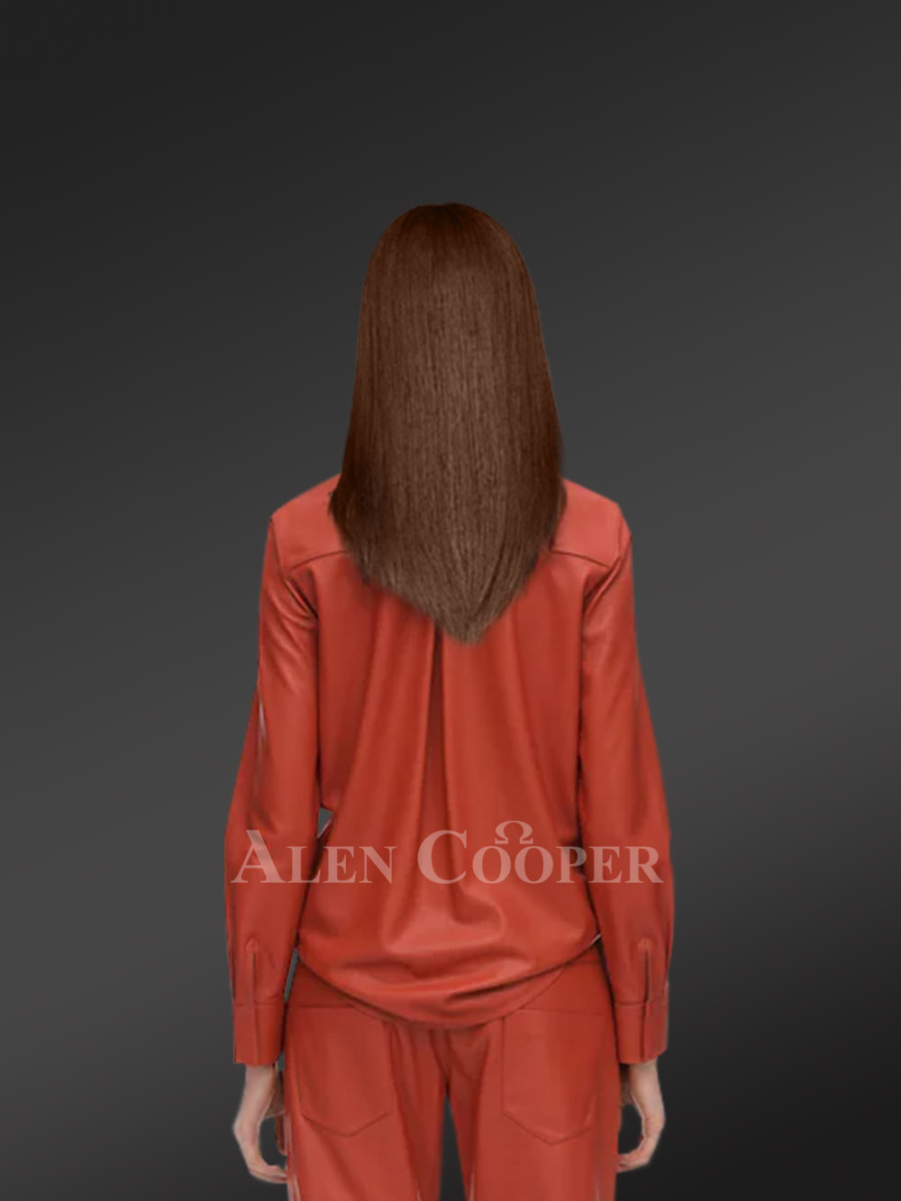 Leather Shirt for Women in Peach with a Casual yet Classy Look