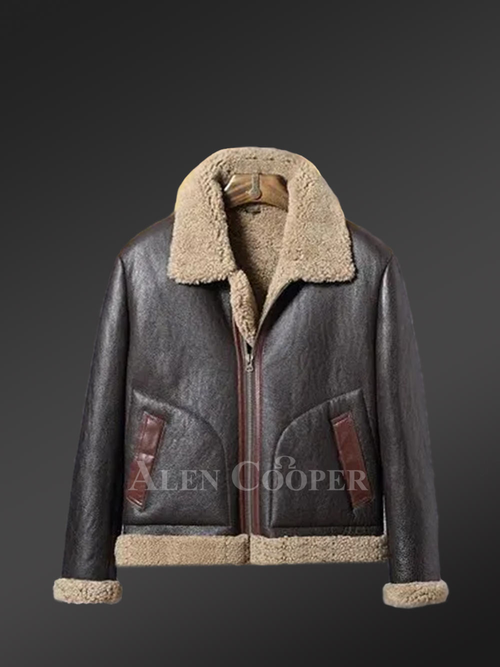 Classic Sheepskin Bomber Jacket with Detachable Hood