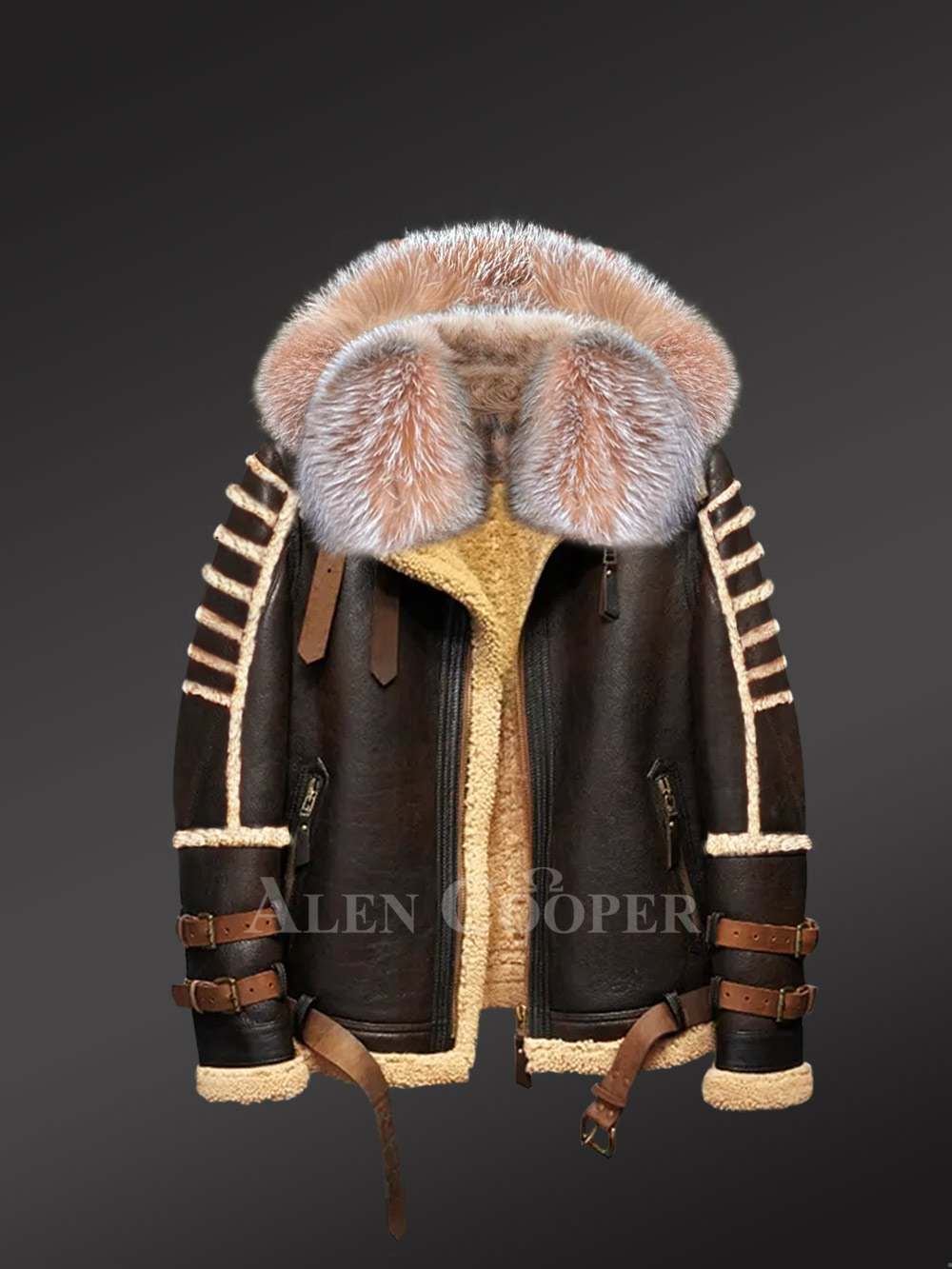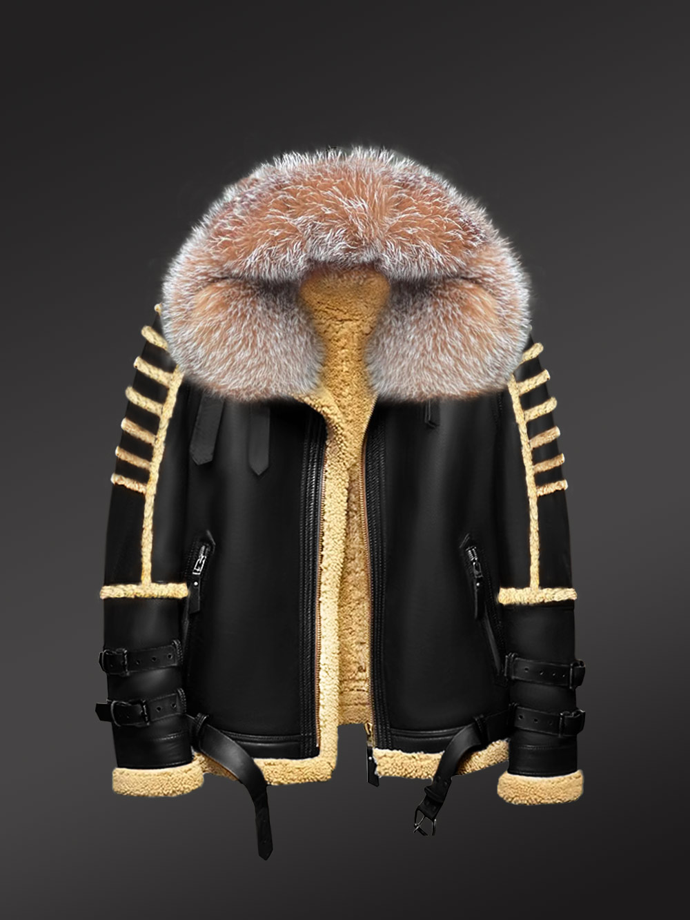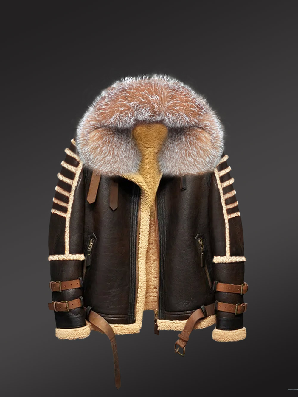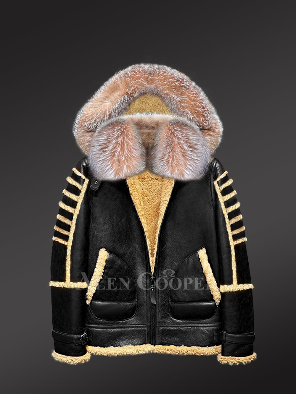 Mens Shearling Jacket with Fur Hood for Best Protection in Winter