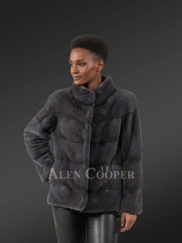 Women’s Blue Iris Mink Layered Turtle Neck Mink Coat