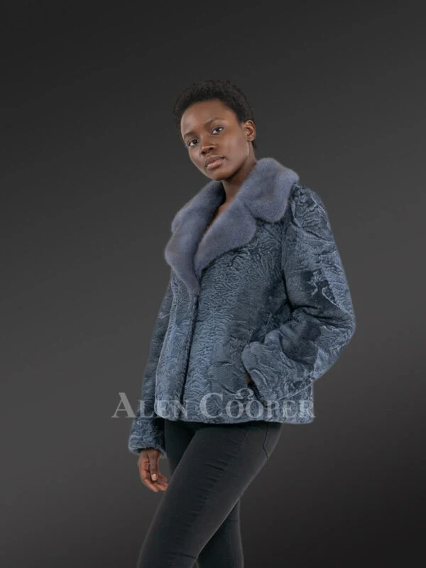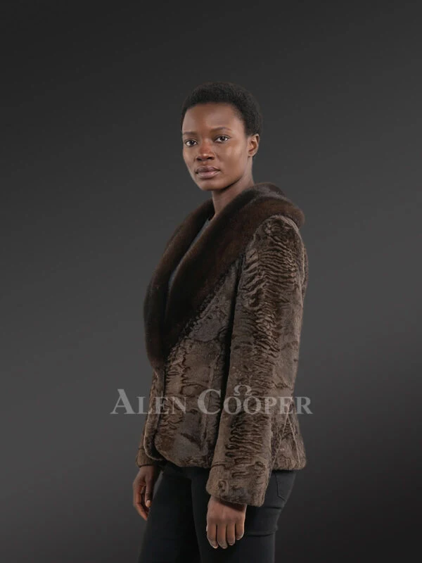 Women’s Lapel Collar Blazer in Persian Lamb with Mink Collar Accent