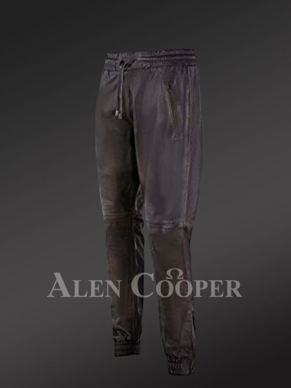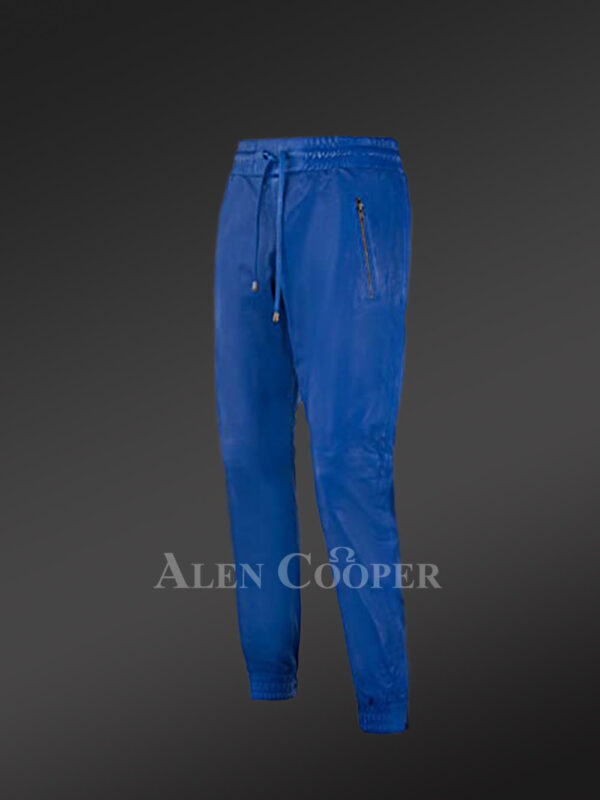 Leather Joggers in Blue for a Comfortable and Soft Texture with a Relaxed Fit