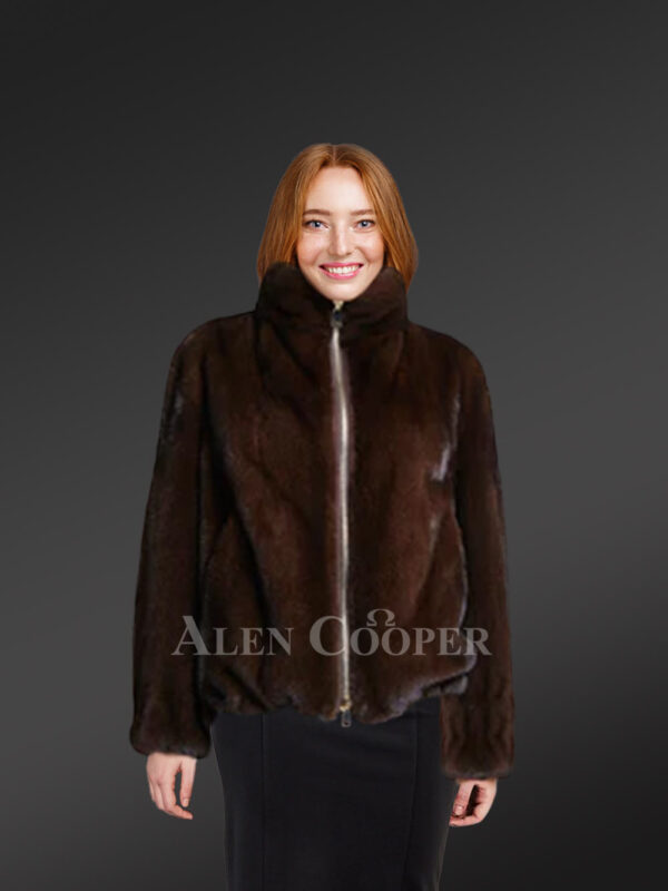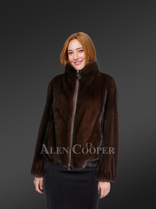 Womens Brown Mink Bomber – Chic Looks with Comforting Touch of Mink Fur