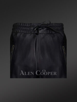 Leather Pants in Jet Black with Unique Criss-Cross Pattern Styles on Sides