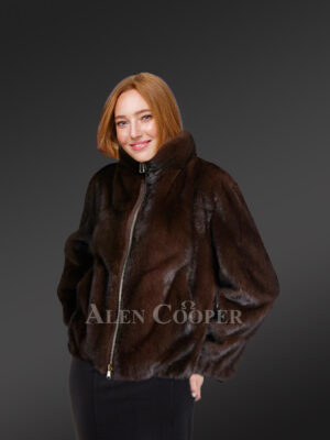 Womens Brown Mink Bomber – Chic Looks with Comforting Touch of Mink Fur