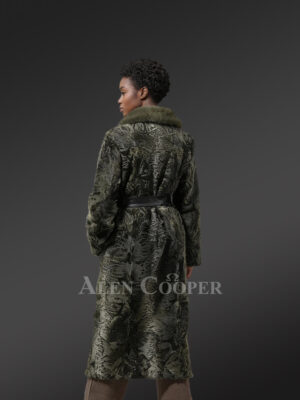 Women’s Full Length Persian Lamb Coat with Belt and Mink Collar Accent
