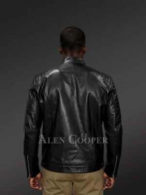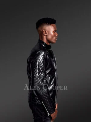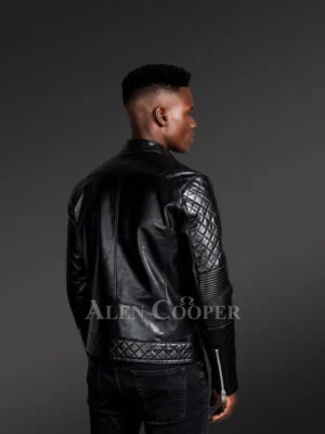 Mens Black Leather Biker Jacket with Quilted Details – Perfect Fusion of Fashion& Function