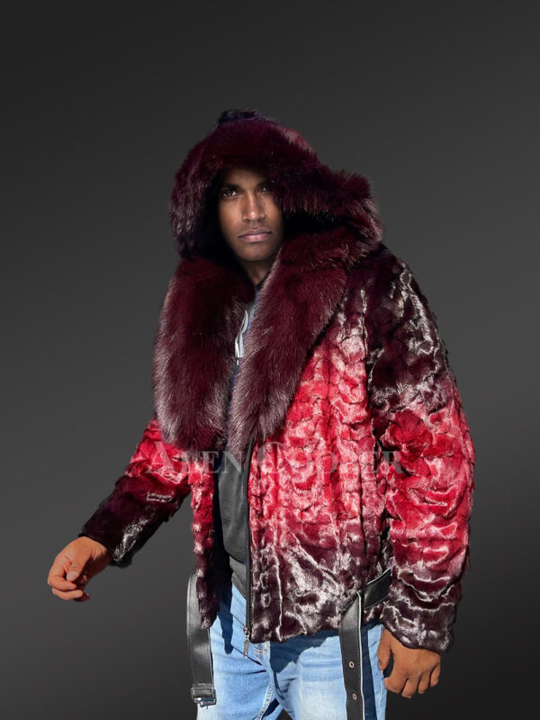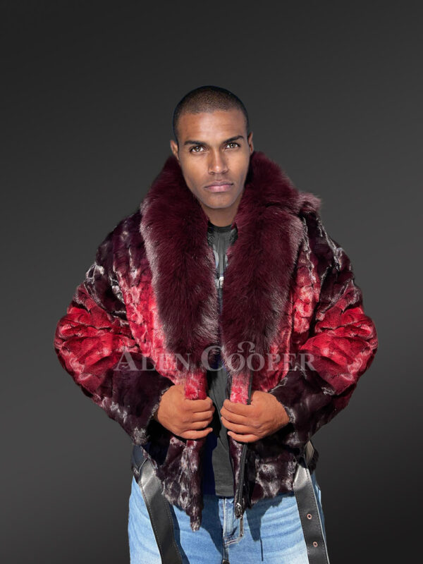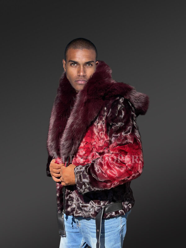 Men Mink Fur Coat with Hood in Burgundy Is an Out-Of-The-Box Outfit