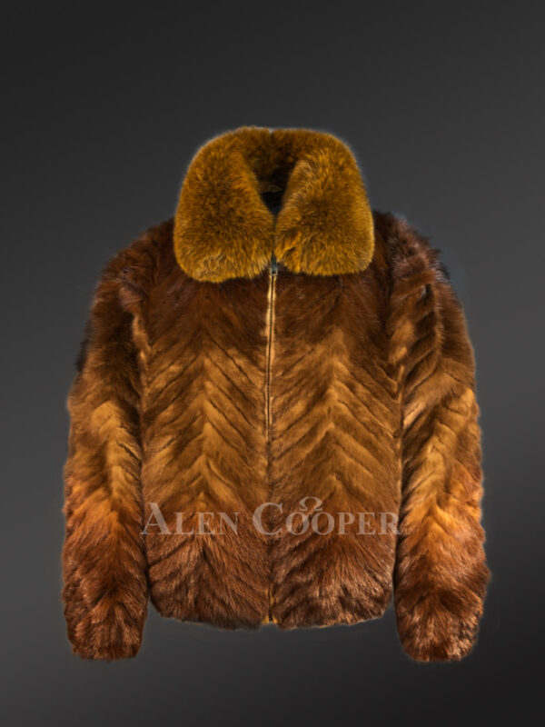 Mens Full Skin Mink Bomber Jacket in Whisky Gold – A Radiant Comforter
