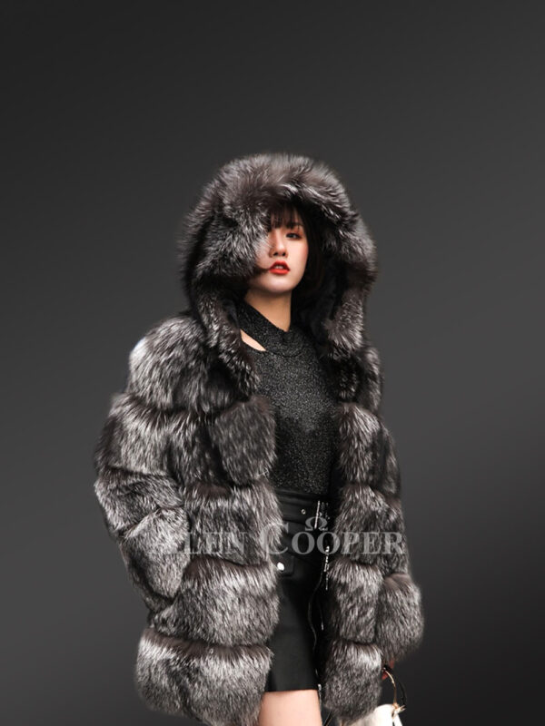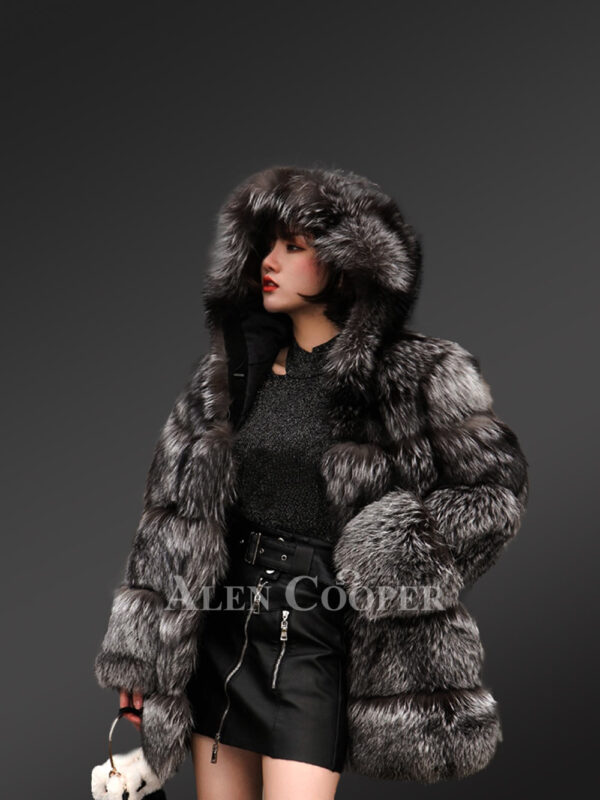 Womens Fox Fur Coat with Hood for Warmth and Style in Winter