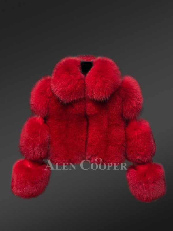 Womens Crop Coat in Fox Fur in Dazzling Red