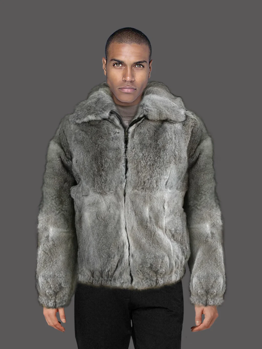 Men Rabbit Fur Bomber Gray
