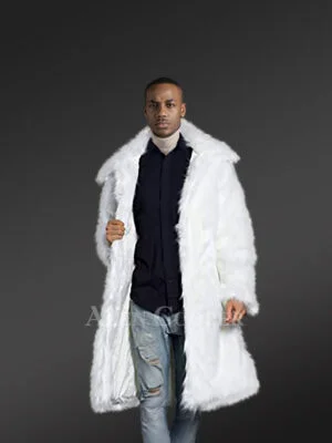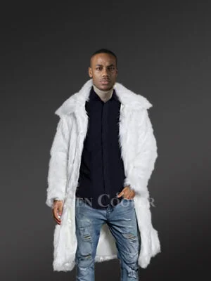 Men’s double breasted Natural Rabbit Fur Long Coat